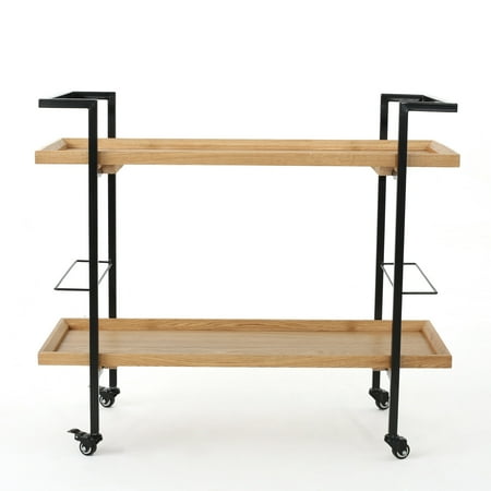 Christopher Knight Home Gerard Modern Industrial 2-Tier Wood Bar Cart with Wheels by