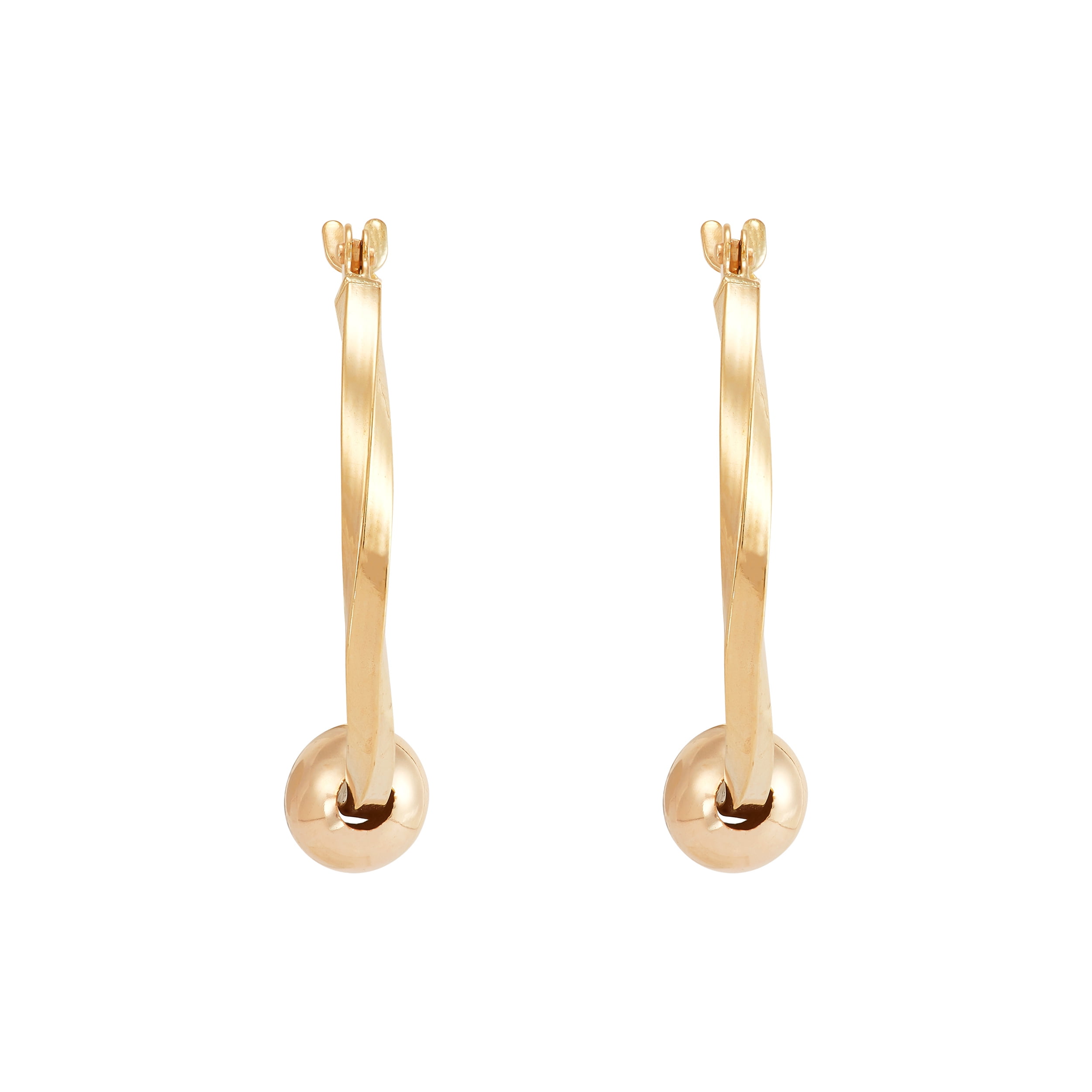 Brilliance Fine Jewelry 10K Yellow Gold Hollow Round Twisted Hoop Bead Earrings