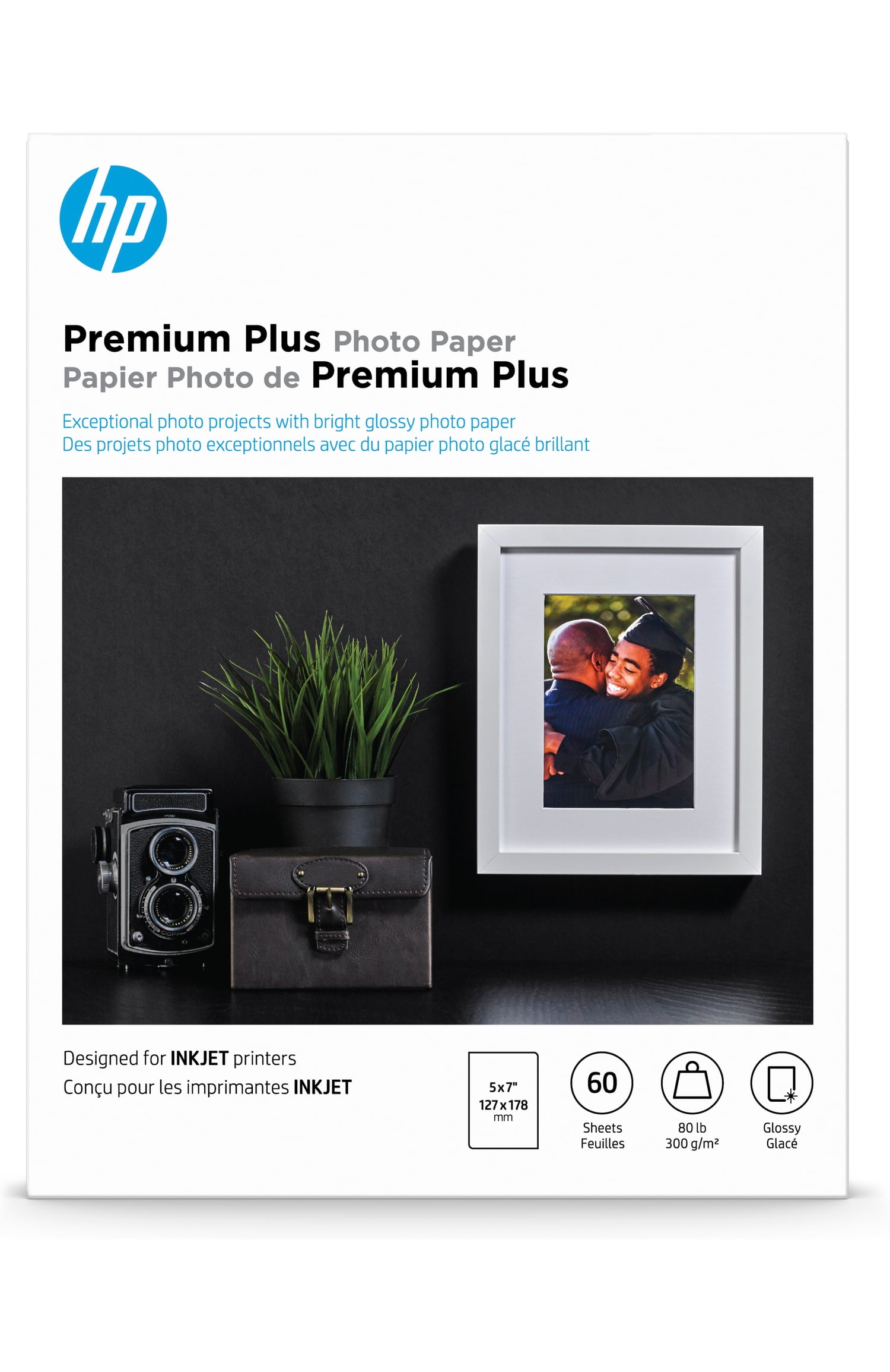 Hewlett-Packard CR669A Premium Plus Photo Paper, 80 lbs., Glossy, 5 x 7, 60 Sheets/Pack
