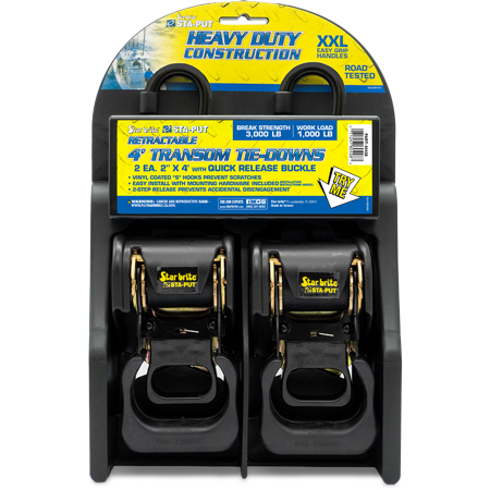 Star Brite Heavy-Duty Retractable Transom Tie Downs For Boat Trailers - 2in x 4ft - 2-Pack