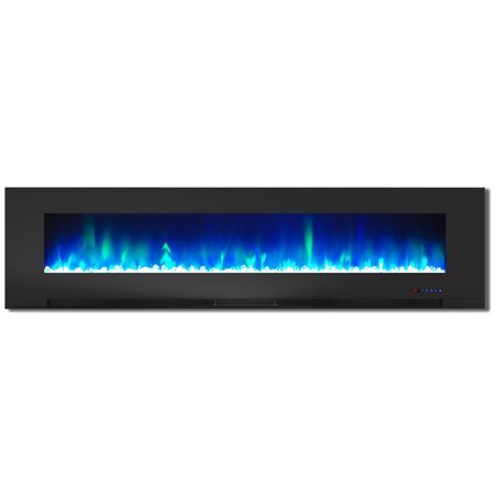 Cambridge 78" Wall-Mount Electric Fireplace Heater with Multi-Color LED Flames and Crystal Rock Display