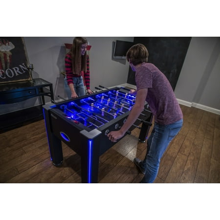 Atomic Azure LED Light Up Foosball Table with Interactive Inrail LED Lighting and Cascading Effects Paired with In Game Music