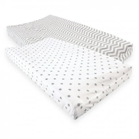 Luvable Friends Baby Fitted Changing Pad Cover, Gray Chevron Dot, One Size