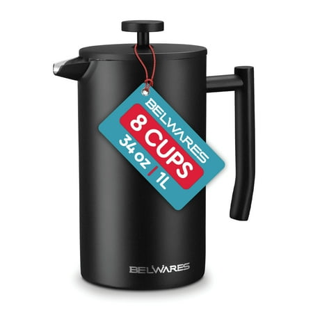 Belwares French Press Coffee Maker | Stainless Steel 304 | Double Wall | 4 Level Filtration System