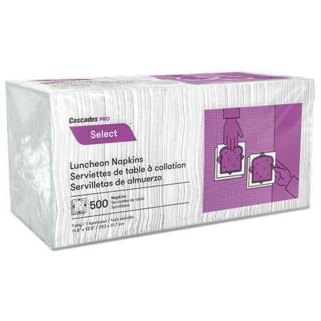 Cascades North River Luncheon Napkins, 1 Ply, 11 1/4 x 12 1/2, White, 500/Pk, 6000/Crtn