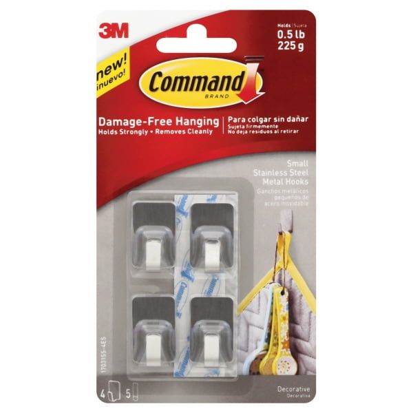 Command Small Sized Metal Decorative Hooks Stainless Steel: Metallic Wall Hooks, Adhesive, 0.5 lb Capacity, Set of 4
