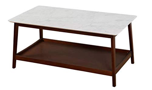 Buylateral Jhovies Coffee Table - Walnut: Faux Marble Top, Solid Wood Frame, Lower Storage Shelf