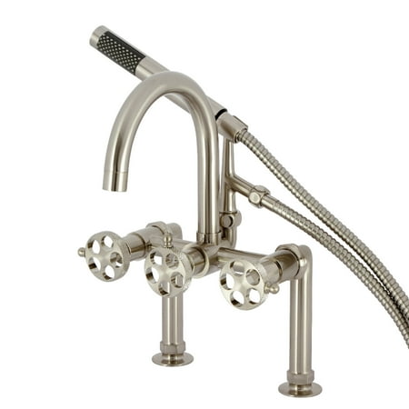 Kingston Brass AE8108RKX Webb 7" Center Deck-Mount Clawfoot Tub Faucet with Knurled Handle and Hand Shower, Brushed Nickel