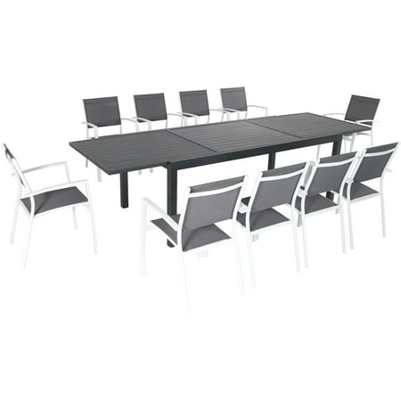 Hanover Naples 11 Pcs Aluminum Outdoor Dining Set, Gray/White
