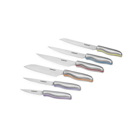 Cuisinart Classic 12-Piece Stainless Steel Color Band Knife Set with Blade Guards, Multicolor