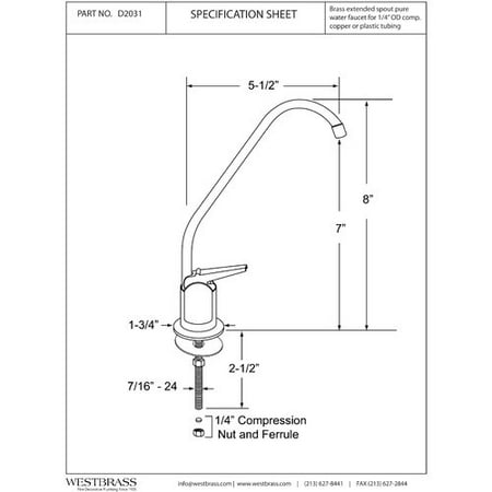 Westbrass R2031-NL-07 8" Touch-Flo Style Pure Water Dispenser Faucet, Satin Nickel