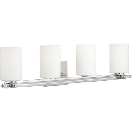 Progress Lighting Lisbon 4-Light Bath Vanity, Polished Nickel, Etched Opal Glass Shade