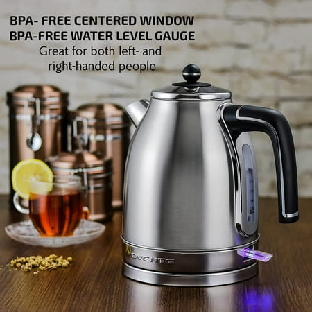 OVENTE 1.7 L Electric Stainless Steel Hot Water Kettle, Auto Shutoff, Coffee Maker, Silver KS777S
