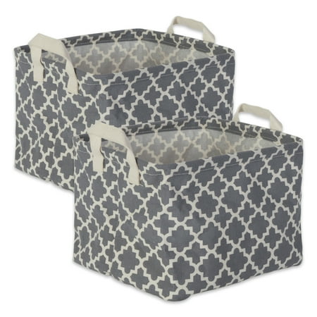 Design Imports Set of 2 Rectangle XL 12.5 x 17.5 x 10.5 Pe Coated Cotton Poly Laundry Bins Lattice Gray