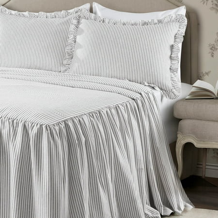 Lush Decor Ticking Stripe Ruffle Detail Bedspread, King, Gray, 3-Pc Set