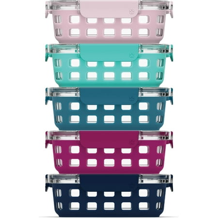 Ello Duraglass 3.4 Cup Meal Prep Sets 10Pc, 5 Pack Set- Glass Food Storage Container with Silicone Sleeve and Airtight BPA-Free Plastic Lids, Dishwasher, Microwave, and Freezer Safe, Evening Orchard