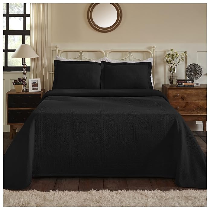 Superior Jacquard Matelasse Cotton Bedspread Set of 3 Pieces, Queen, Black