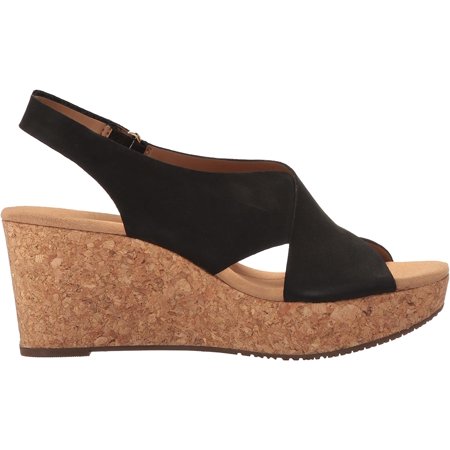 Clarks Women's Annadel Eirwyn Wedge Sandal, Black Nubuck, 10 M US