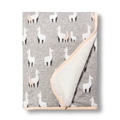 Jersey Knit Reversible Faux Fur Blanket Llamas - Cloud Island™ Gray/Cream