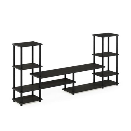 Furinno Multifunctional TV Stand for TV's up To 48" TV Console Entertainment Center Open Bookcase Shelves, Espresso/Black