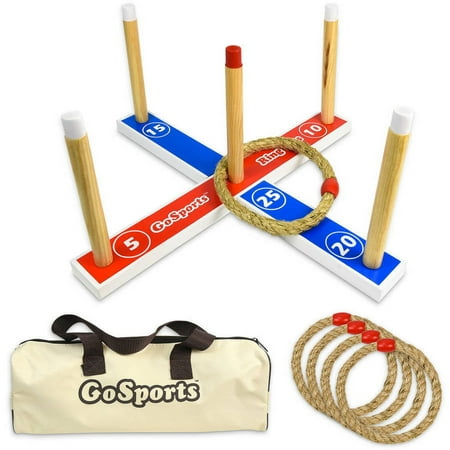 GoSports Premium Wooden Ring Toss Game with Carrying Case - 5pc