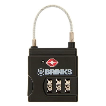 Brinks 37mm Zinc Die-Cast TSA Combination Luggage Padlock with Flexible Braided Cable Shackle