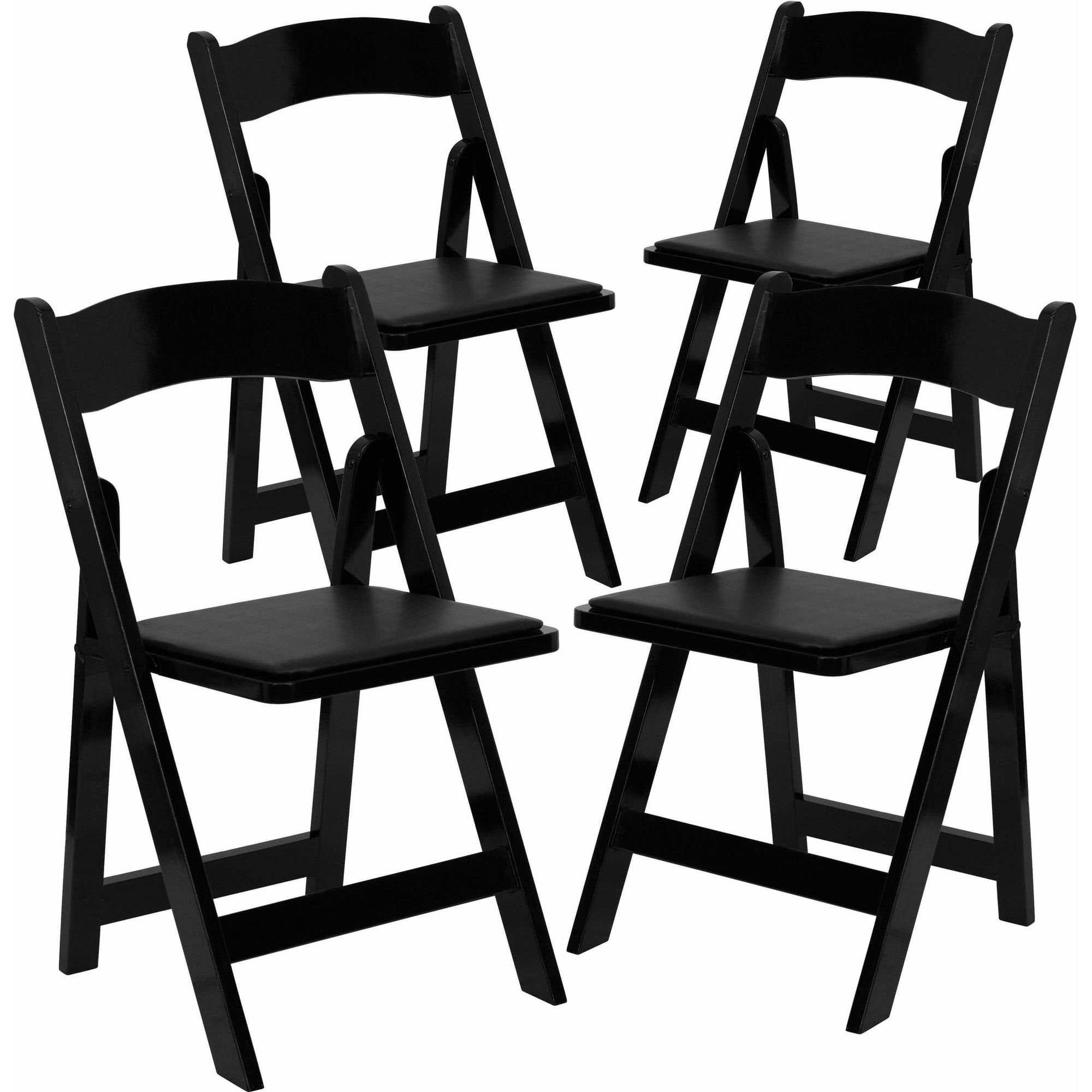 Flash Furniture 4 Pack HERCULES Series Black Wood Folding Chair with Vinyl Padded Seat