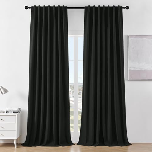 Joydeco Black Blackout Curtains 90 Inches Long - Linen 100% Blackout Curtain for Bedroom, Rod Pocket & Back Tabs Thermal Insulated Noise Reducing Window Drapes 2 Panels Set (Black,52" Wx90 L)