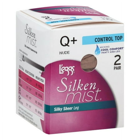 L'eggs Silken Mist Women's Control Top 2pk Pantyhose - Nude XL: High Waisted Sheer Hosiery, Knit Fabric