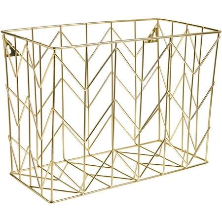 U Brands Metal Hanging File Basket Desktop Organizer, Gold Finish, 894U