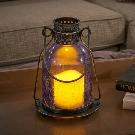 Smart Living 11" Monaco Glass LED Candle Outdoor Lantern - Amber