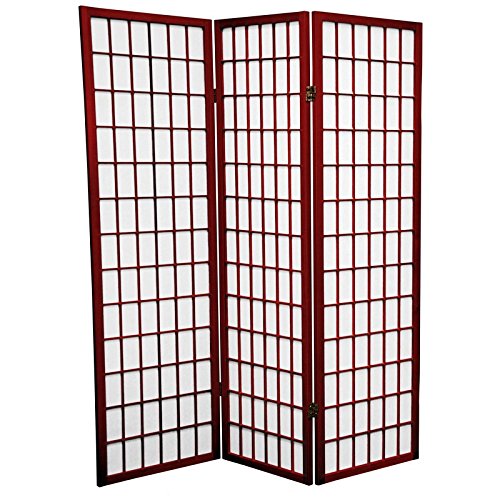 Oriental Furniture 5 ft. Tall Window Pane Shoji Screen - Rosewood - 3 Panels