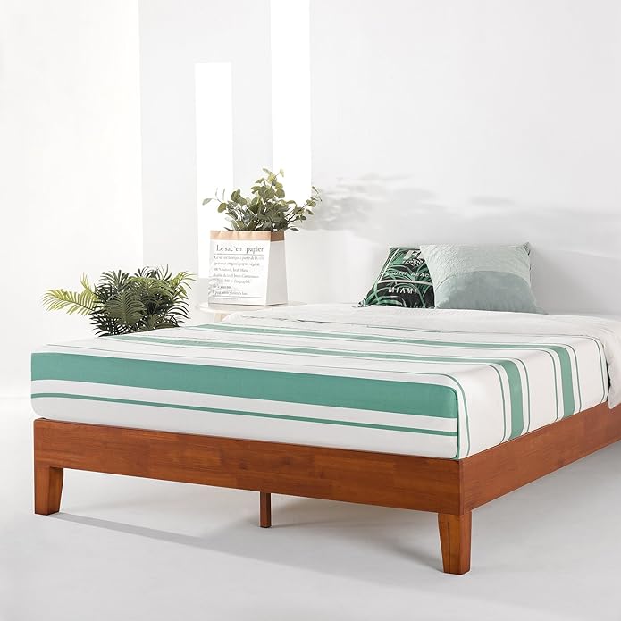 Mellow King 12" Solid Wood Platform Bed Frame w/Grand Wooden Slat (No Box Spring Needed), Cherry