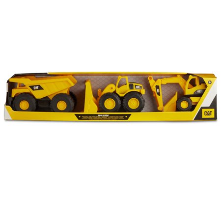 CAT Construction Toys, Mini Crew 3-Pack 7”, Push-Powered Yellow Construction Vehicle Toys, Includes Dump Truck, Wheel Loader, and Excavator for Kids and Toddlers Ages 2+