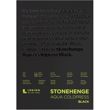 Stonehenge Aqua Block Coldpress Pad 10"X14" 15 Sheets/Pkg-Black 140lb