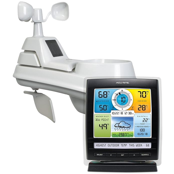 AcuRite 01512 Wireless Weather Station with 5-in-1 Weather Sensor: Temperature and Humidity Gauge, Rainfall, Wind Speed and Wind Direction