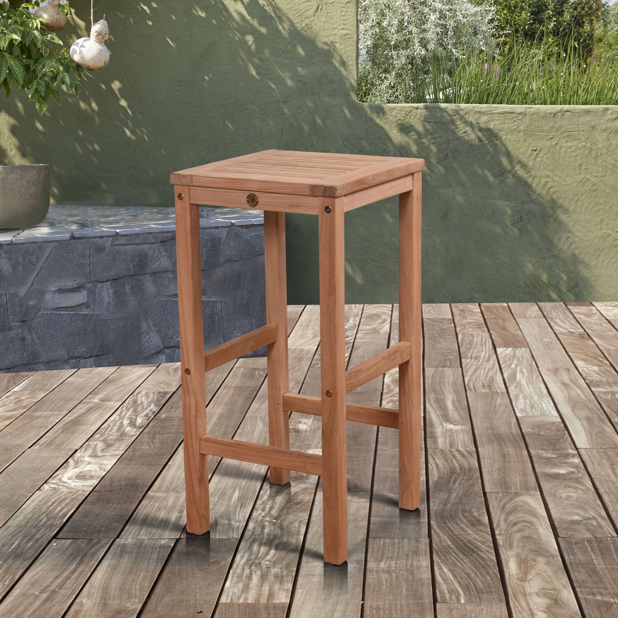 Amazonia Texas Solid Teak Wood Barstool. Ideal For Patio, Brown