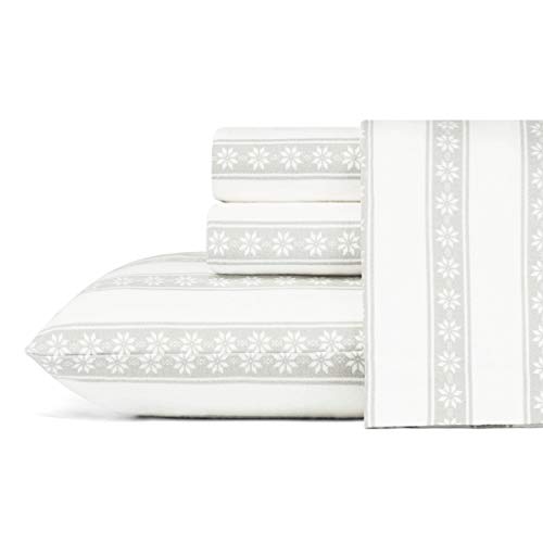 Eddie Bauer - Queen Sheets, Cotton Flannel Bedding Set, Brushed For Extra Softness, Cozy Home Decor (Snowflake Fair Isle, Queen)
