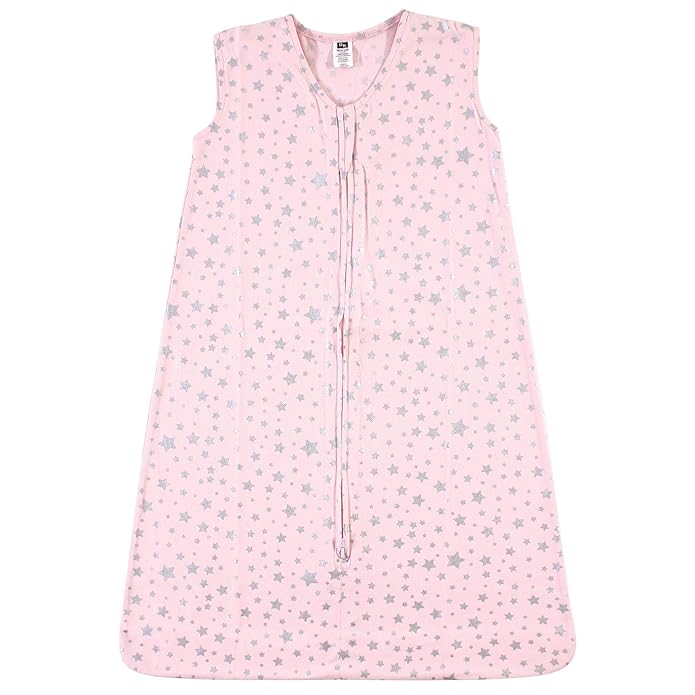 Hudson Baby Infant Girl Cotton Sleeveless Wearable Sleeping Bag, Sack, Blanket, Silver Pink Star, 12-18 Months