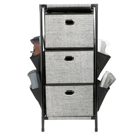 Simplify 3 Tier Nonwoven Storage Drawers with Side Pockets in Black