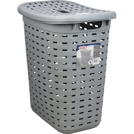 Sterilite Plastic Wicker Laundry Hamper with Lid, Cement