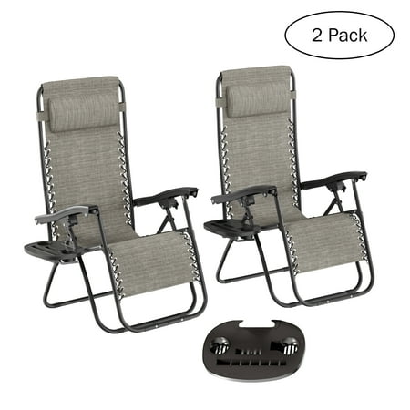 Zero Gravity Lounge Chairs- Set of 2- Gray Folding Anti-Gravity Recliners- Side Table Cup Holder & Pillow-For Outdoor Lounging by Lavish Home