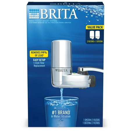 Brita Chrome Tap Water Faucet Filtration System with 2 Filters and Filter Change Reminder