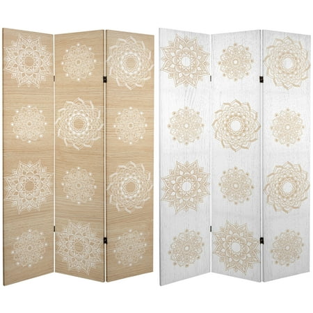 6" Double Sided Mandala On Birch Canvas Room Divider Beige - Oriental Furniture