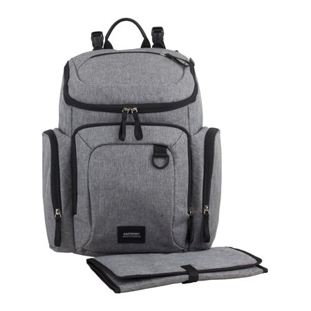 Eastsport Wooster St. Backpack Diaper Bag with Adjustable Shoulder Straps, Bonus Changing Pad, Stroller Straps and Insulated Zipper Pockets, Light Grey