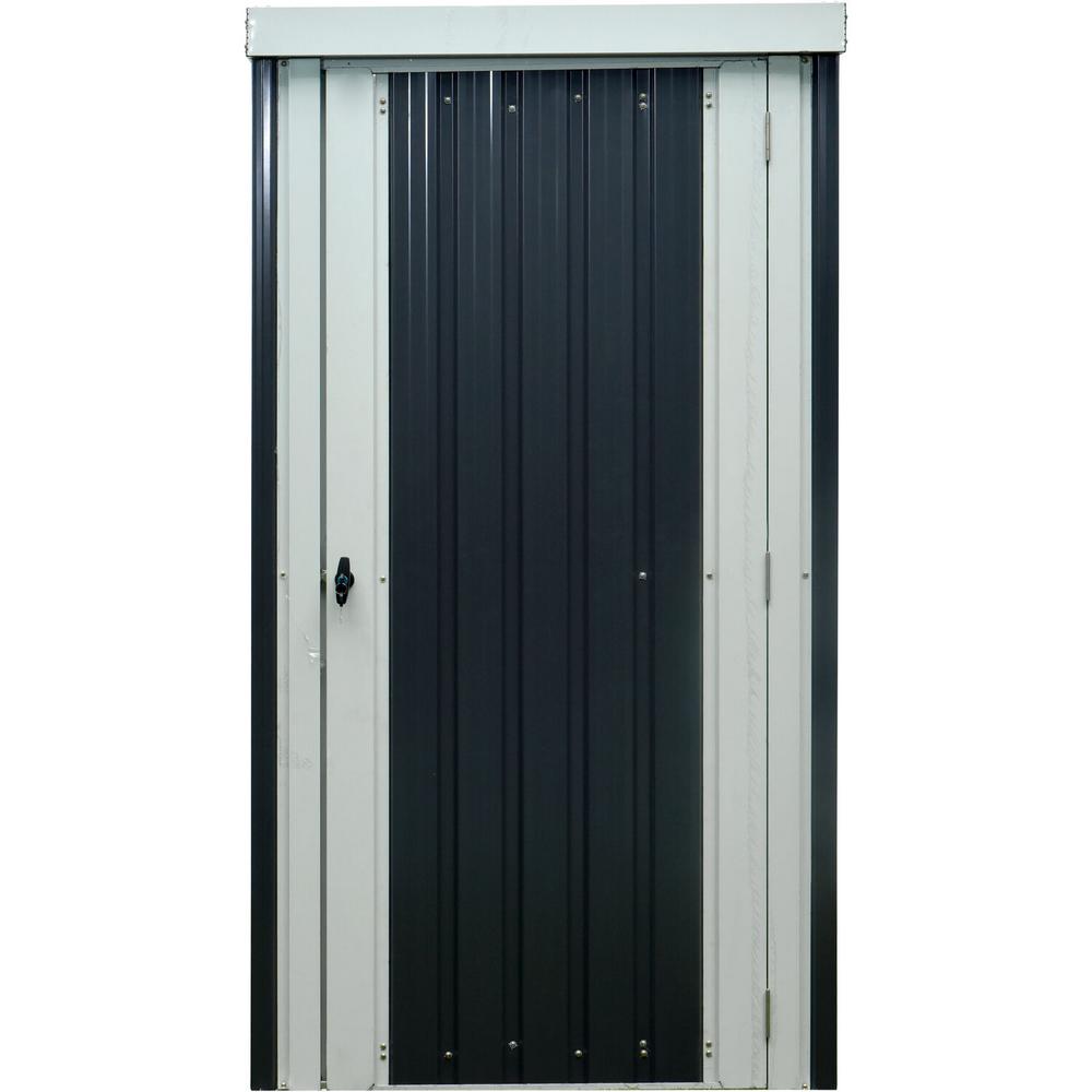 Hanover Patio Storage Shed | Galvanized Steel | Twist Lock and Key | 2 Tool Hooks | 3-Ft. x 3-Ft. x 6-Ft. | Dark Gray / White | HANPATSHD-GW