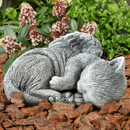 Pure Garden Sleeping Angel Cat Pet Memorial Statue, Resin, Faux Stone Finish