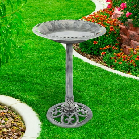 Pure Garden, Bird Bath, Polyresin Antique Grey Finish, Vintage Scroll Design