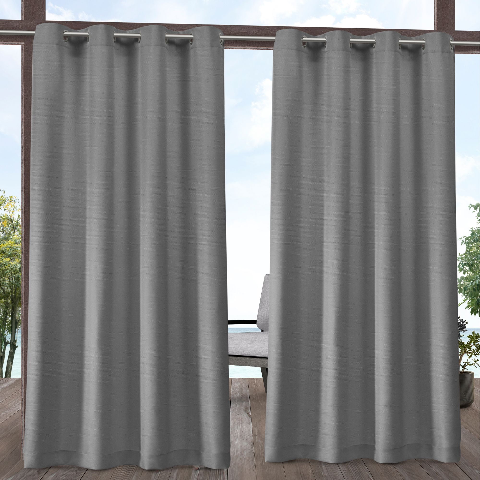 Set of 2 (96"x54") Outdoor Solid Cabana Grommet Top Light Filtering Curtain Panel Gray - Exclusive Home