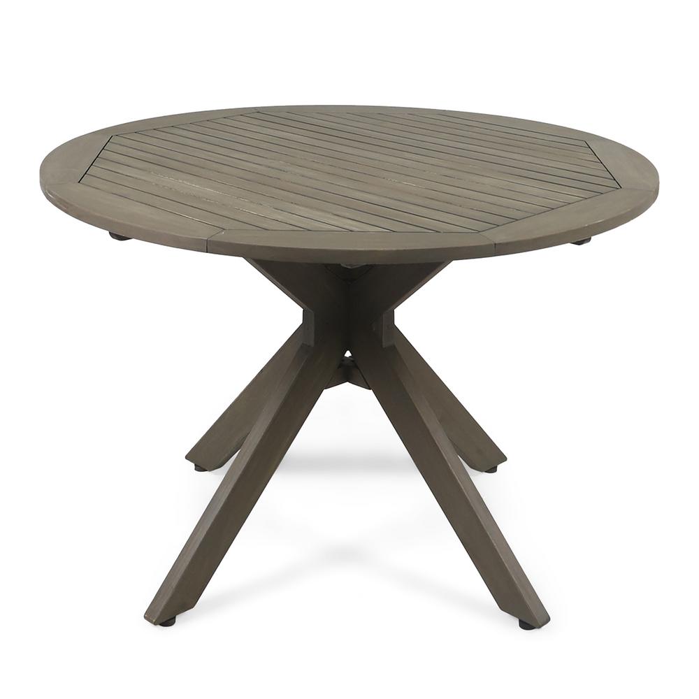 Jaxson Outdoor Round Acacia Wood Dining Table With X Base, Gray
